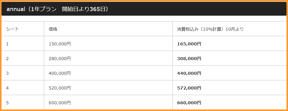 一番安い1年プランで165,000円となっています。結構高いですね。